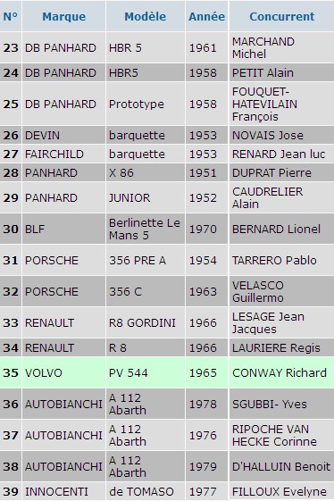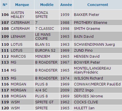 - Série C : Voitures de Sport à moteur avant ayant couru de 1952 à 1955 inclus