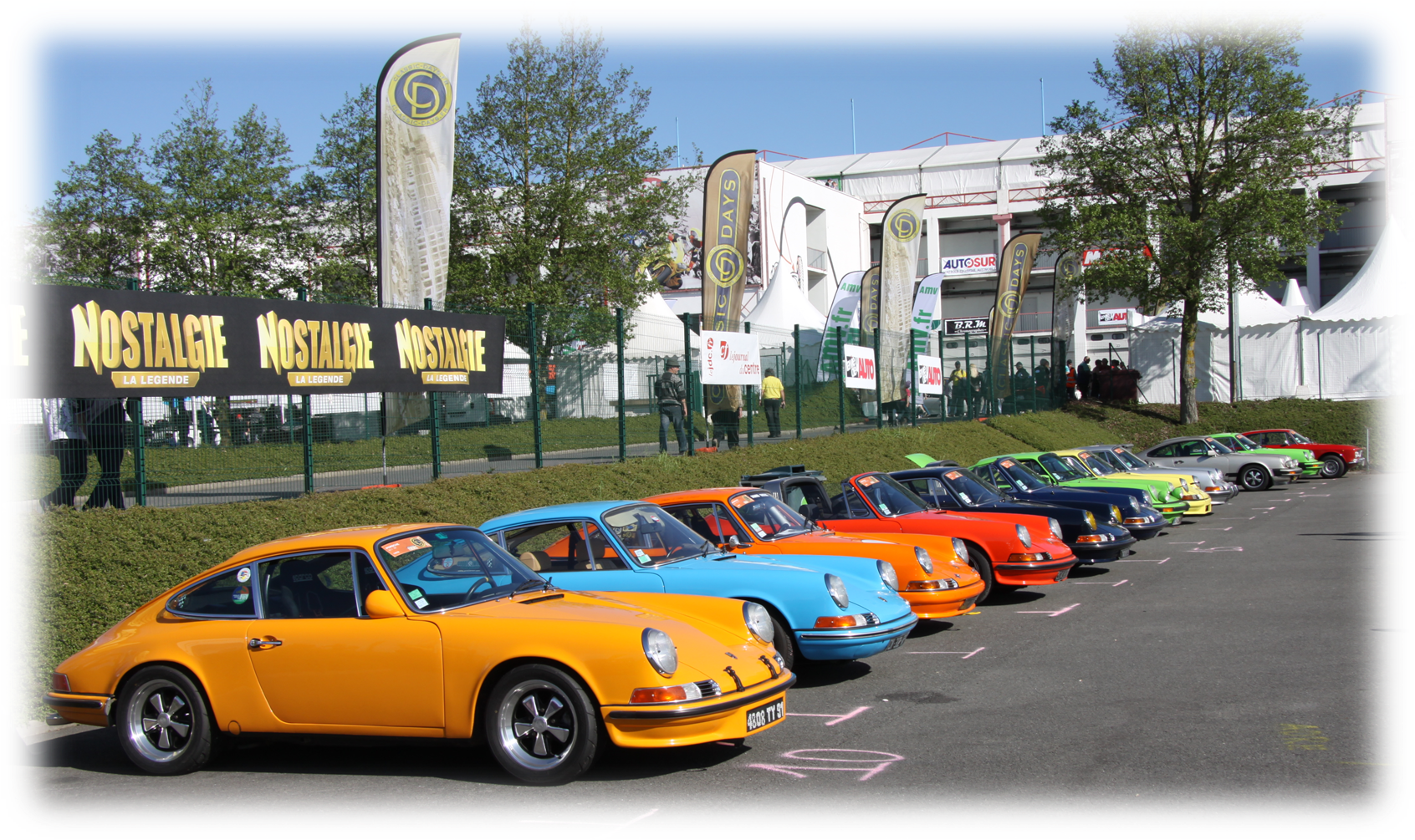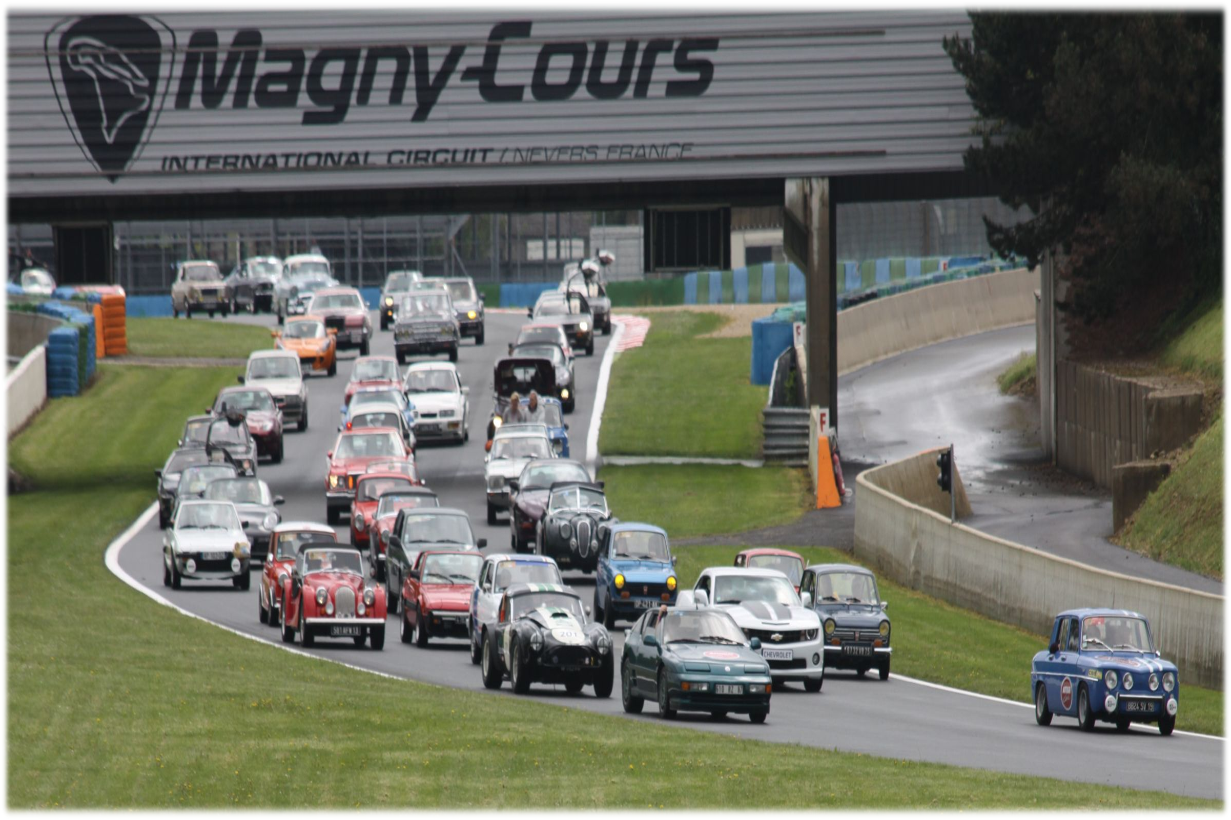 Comme lors de chaque édition, en plus des séances de roulage sur la piste Grand Prix, les Classic Days proposaient des expositions de voitures dans les Classic Park, un rallye touristique sans oublier l’incontournable parade du dimanche midi. Même si évidement les conditions météorologiques ont joué contre les organisateurs, la parade a tout de même réuni plus de 560 voitures. Les véhicules étaient légèrement différents par rapport aux précédentes parades, on y retrouvait plus de coupés et berlines qu’habituellement et les cabriolets étaient plus rares. Le constat était le même lors du départ du rallye le samedi après midi, nombreuses étaient les voitures fermées à franchir l’arche Andros au moment du départ. Mention spéciale aux participants en Mini Moke et en Aston Martin DBR1 qui ont bravé les conditions météorologiques.