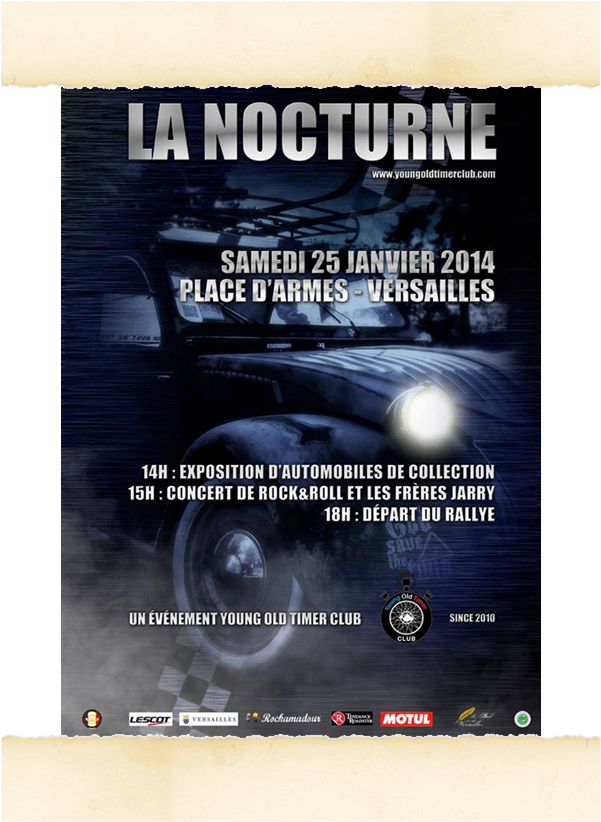 Première fois que nous nous rendions en tant que spectateurs au départ de La Nocturne, une manifestation qui prend chaque année de l’ampleur et a du refuser des concurrents cette année. Le départ était donné de la Place d’Armes à deux pas du château de Versailles, au cœur de la ville royale qui donne un décor unique à La Nocturne. Vieilles pierres et vieilles carrosseries se marient généralement très bien, surtout quand le soleil est de la partie comme c’était le cas en cette après midi de la fin du mois de Janvier.