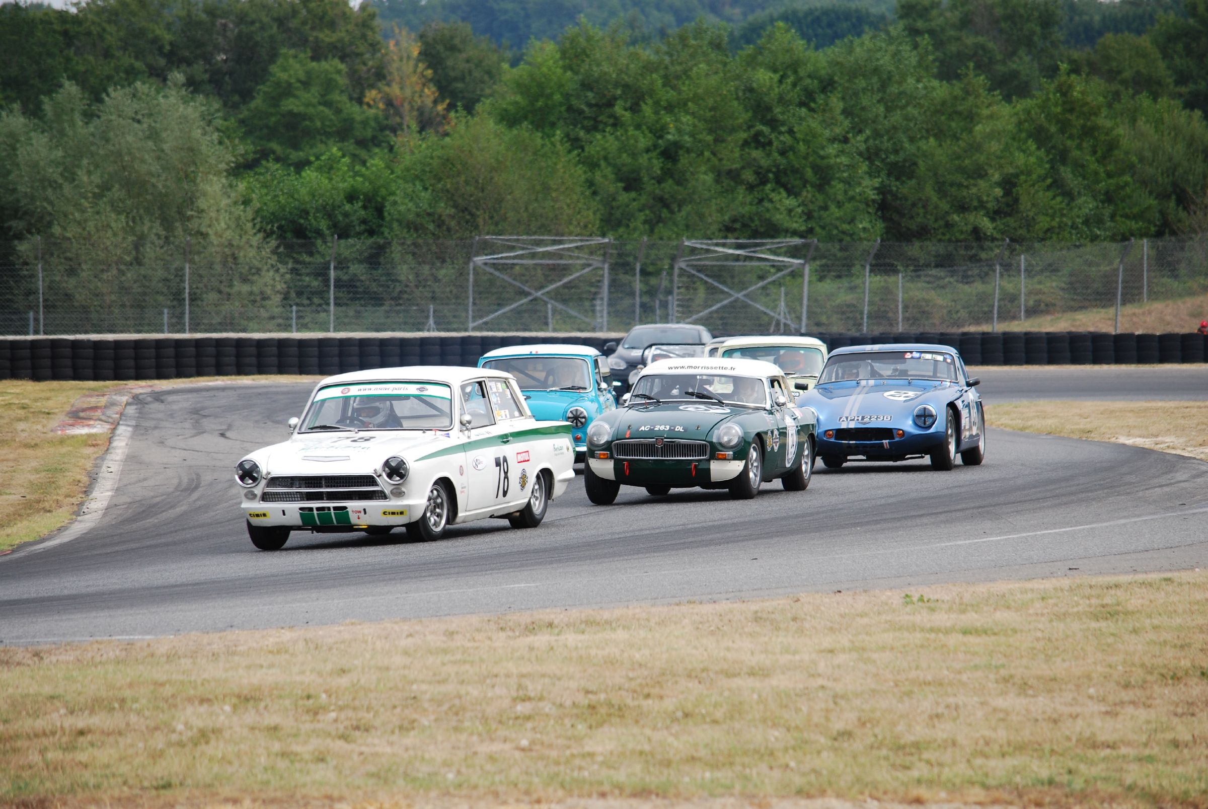 La météo du dimanche est moins clémente que celle du samedi après-midi et les averses s’enchainent tout au long de la journée. Le vent permet de maintenir la piste praticable mais celle-ci s’humidifie de plus en plus au cours de la journée. Au moment du départ, la piste est quasiment sèche, permettant aux voitures et aux pilotes de s’exprimer librement. Le départ de Morrissette aurait pu être excellent si son pilote n’avait pas raté le passage de la 3ème vitesse. Au final c’est donc un départ neutre, ni bon, ni mauvais ou la MG B se contente de conserver sa position. Rapidement les performances entrevues lors des qualifications se confirment, les Cortina disparaissent peu à peu au loin devant Morrissette et aucune voiture n’apparait dans le rétroviseur. Ce sera donc une course relativement anonyme en milieu de peloton où l’on se contente d’enchainer les tours les plus propres possibles.