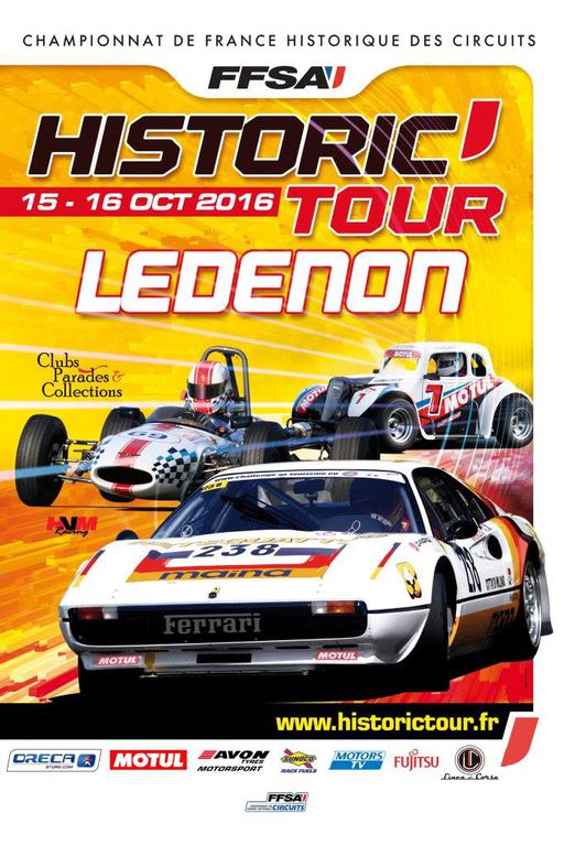 La dernière manche de l’Historic Tour 2016 se déroulera ce weekend (du 14 au 16 octobre) sur le circuit de Lédenon situé à quelques kilomètres de Nîmes. Depuis l’an dernier l’Historic Tour décerne deux titres de champions de France FFSA, l’un pour les GT/Tourisme et l’autre pour les monoplaces et prototypes. Le titre GT/Tourisme 2016 est déjà acquis par Franck Morel qui totalise assez de points pour ne plus être rattrapé au classement général. Du côté des monoplaces et prototypes les choses ne sont pas encore jouées, puisque Hugo Carini est actuellement en tête devant Lionel Robert et Nicolas Belou mais le classement peut encore changer à l’issue des courses de Lédenon.