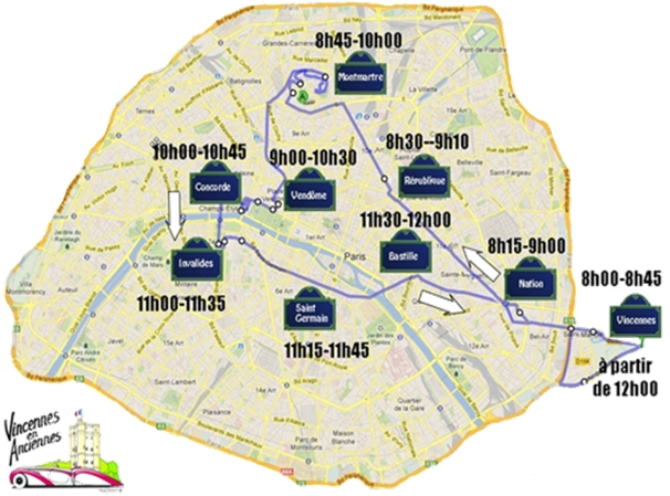 Départ du Château de Vincennes (esplanade Saint Louis) : 8h00 à 9h00